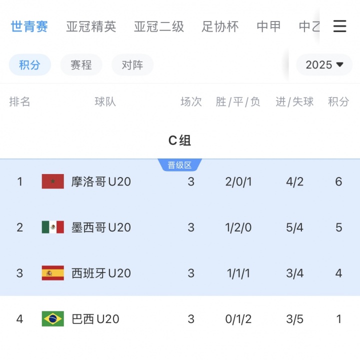 本届世青赛,小组赛阶段摩洛哥2胜1负小组第一晋级下一轮 ,同小组还有墨西哥、西班牙、巴西。