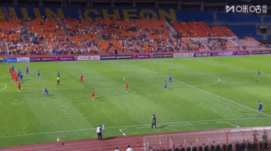 09月16日讯 申花vs江原上半场补时最后时刻,高天意快发定位球,