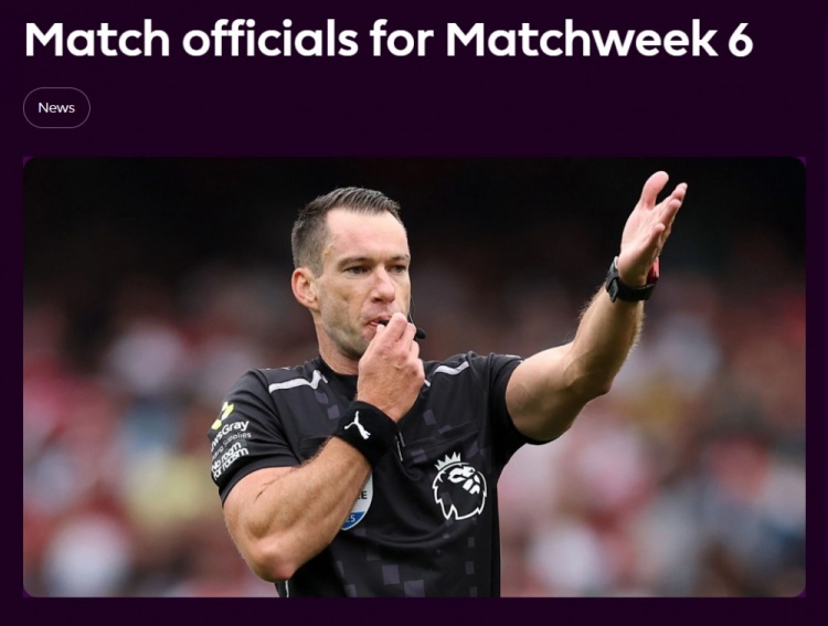 9月27日22:00 水晶宫vs利物浦 主裁判 :克里斯-卡瓦纳 VAR:马特-多诺霍