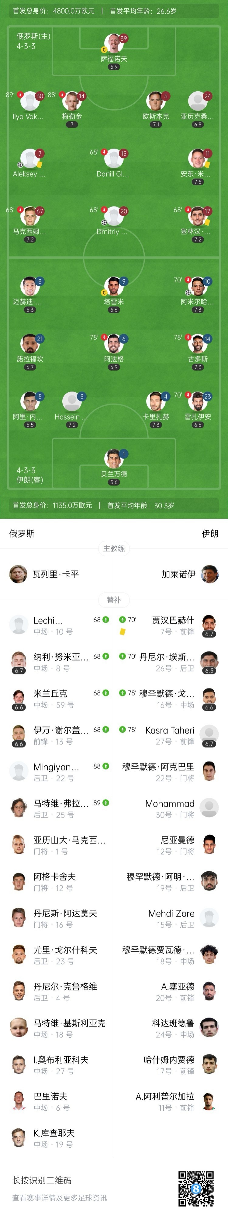友情 赛俄罗斯2-1击败伊朗,沃罗比约夫、巴特拉科夫破门