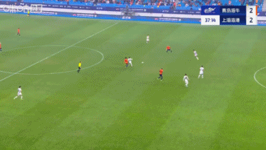 10月17日讯 海港vs海牛第37分钟,兰克尔-泽第37分钟回转 抽射得手,