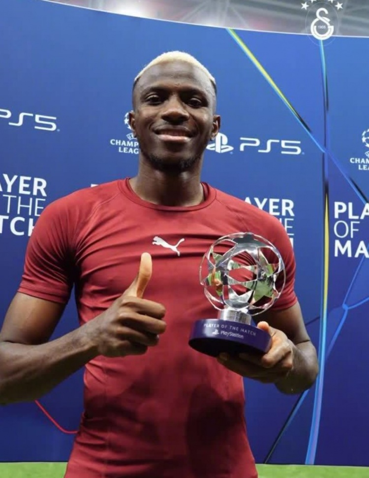 连进两球,官方:奥斯梅恩当选加拉塔萨雷3-1博德闪耀全场最佳