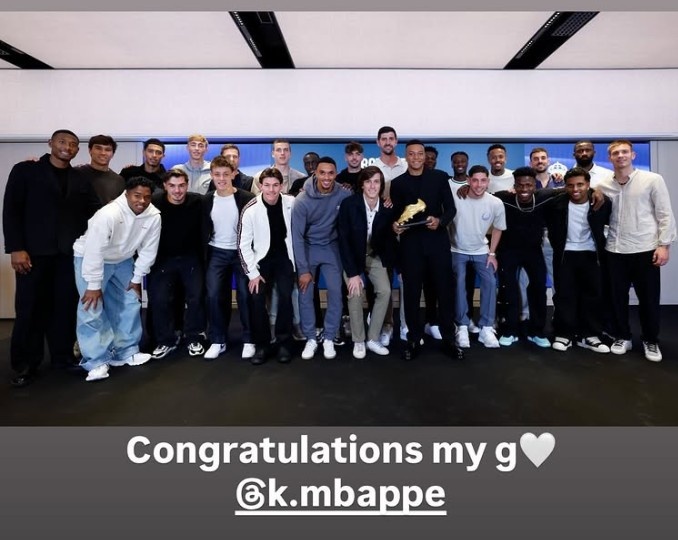 10月31日讯 姆巴佩在今日领取了代表上赛季欧洲最佳射手的欧洲金靴奖,皇马全队现场见证。