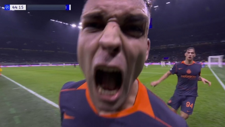 在上半场屡失良机后他终于打进一球。此时比分变为国米1-0领跑 。